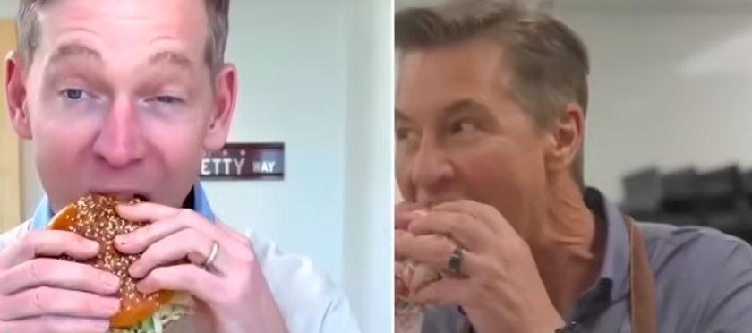 Filmé dans un cadre décontracté, vêtu sans cravate, il a tenté de croquer dans ce mastodonte culinaire, et a aussitôt révélé l’ampleur du défi. « Je ne sais même pas comment attaquer ça », a-t-il lâché en fixant le burger d’un air perplexe, avant de se lancer.